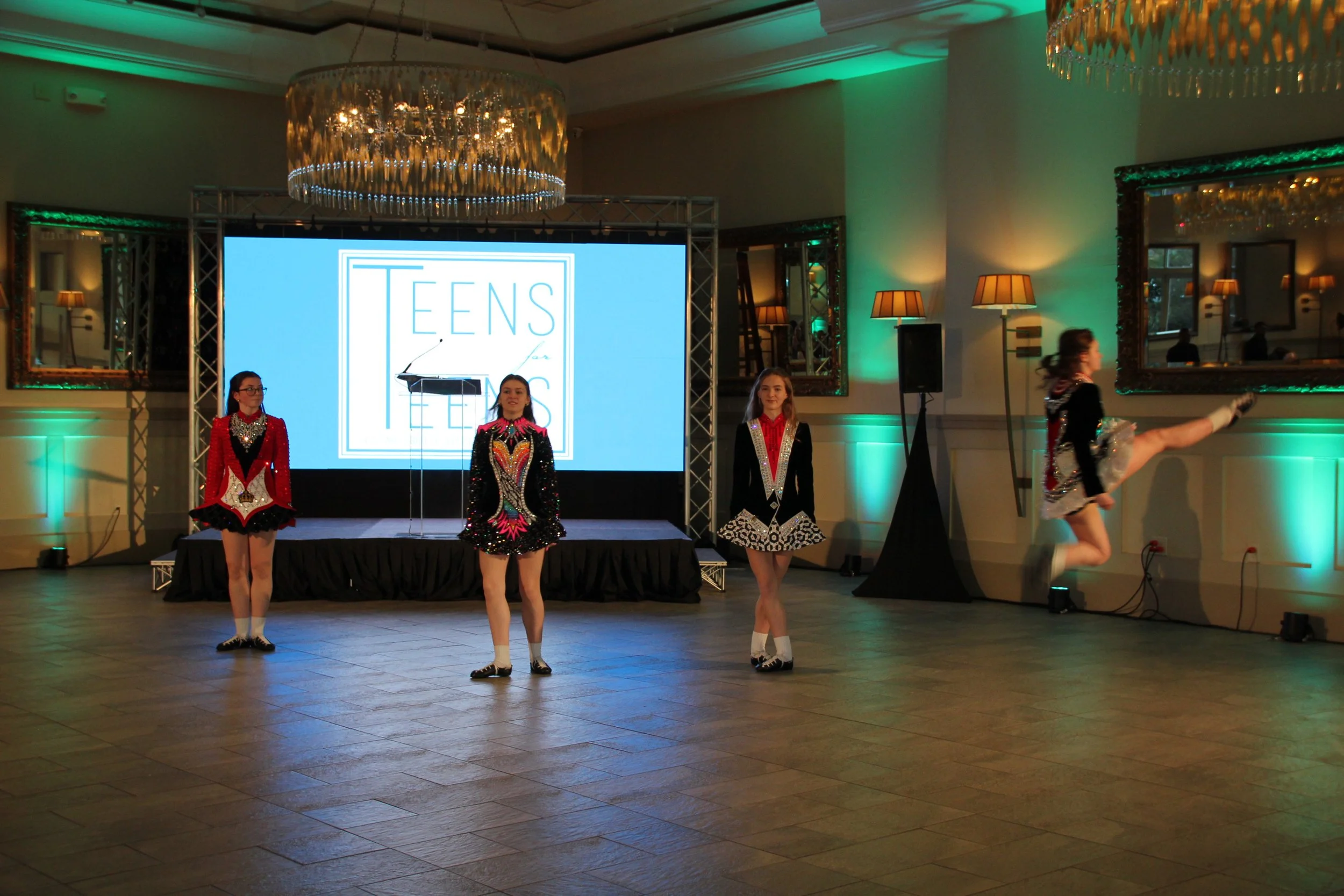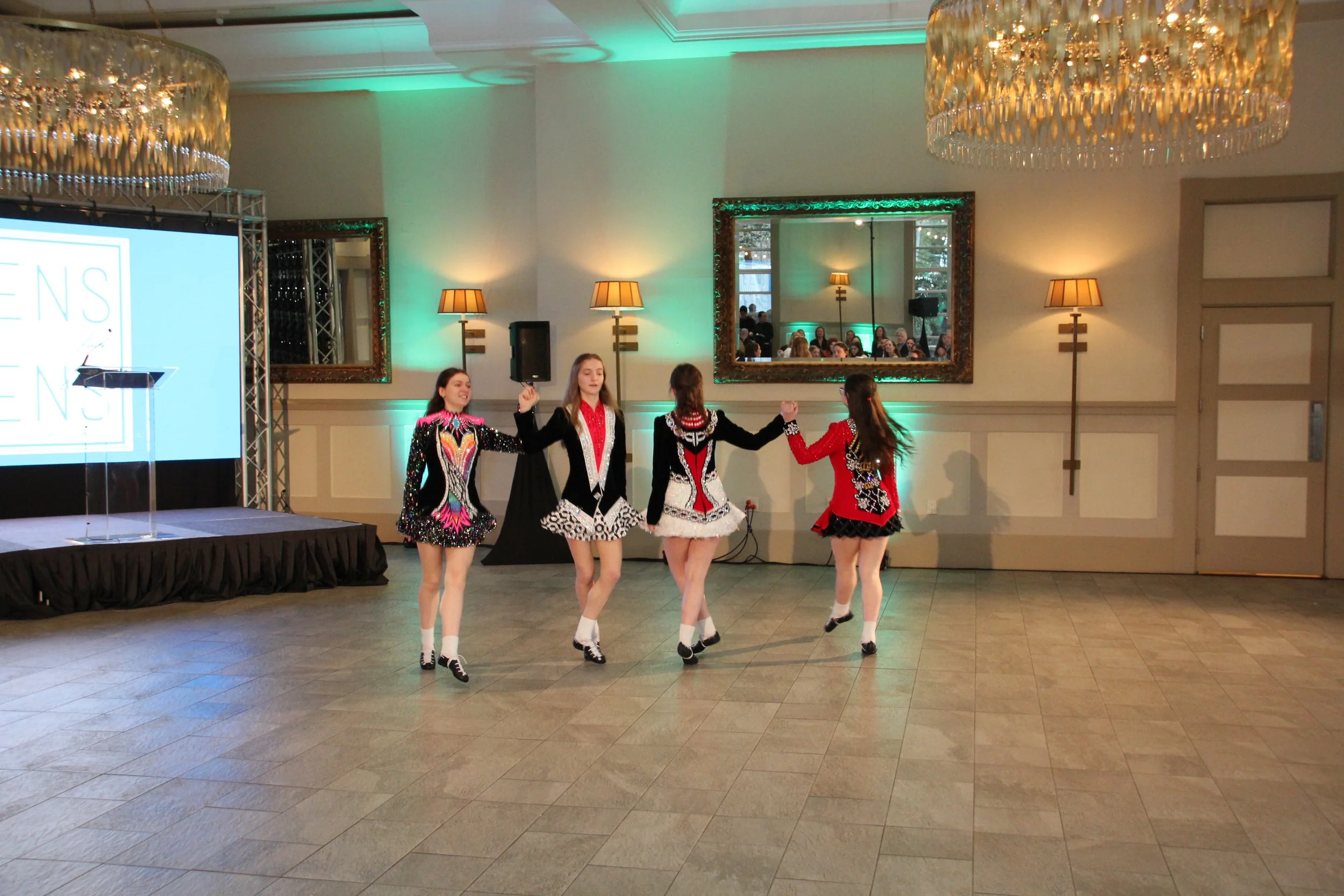 Three young women sitting behind a table at an event, smiling at the camera, with tickets and informational materials displayed on the table.